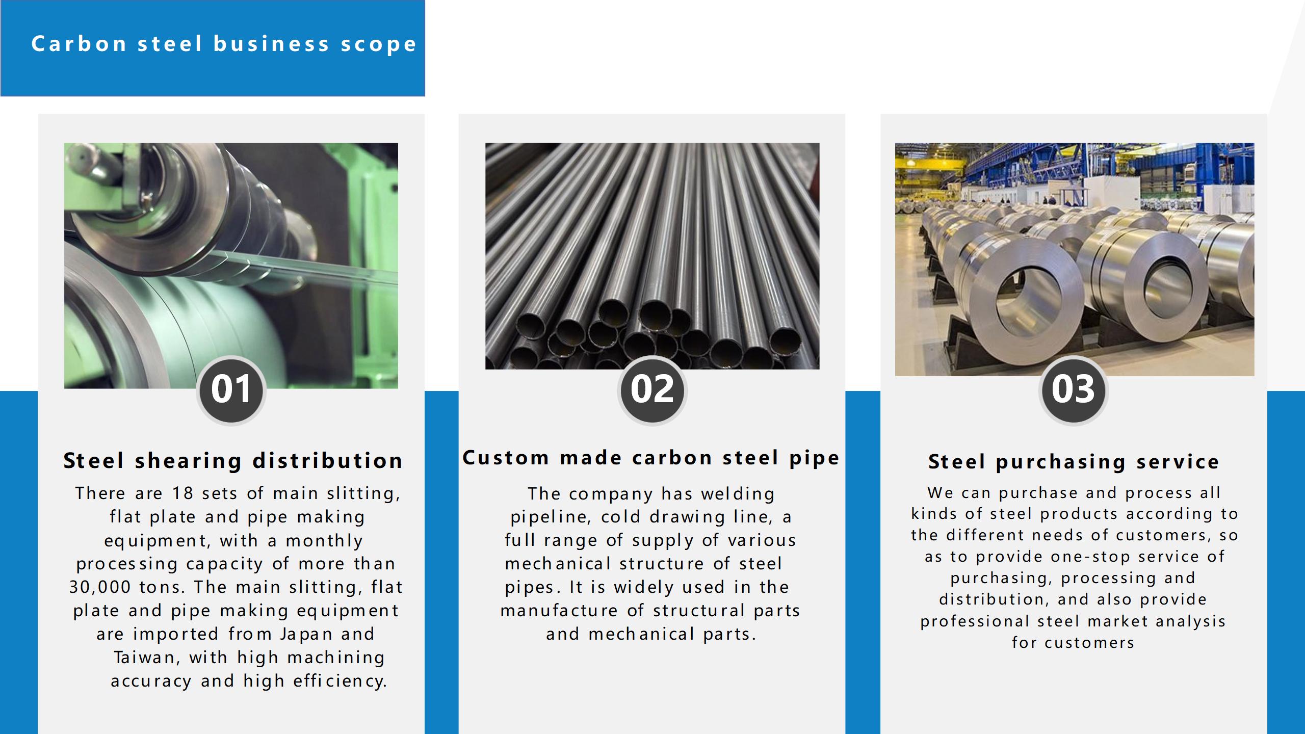 The daily import and export volume of steel coils and plates can reach over 1000 tons, and the shipment volume can reach over 800 tons. We have the most advanced cutting equipment from Japan, Taiwan, China, and other places, including slitting machines, leveling machines, automatic rapid slicing machines, and shearing machines, which can fully meet the needs of various industries.