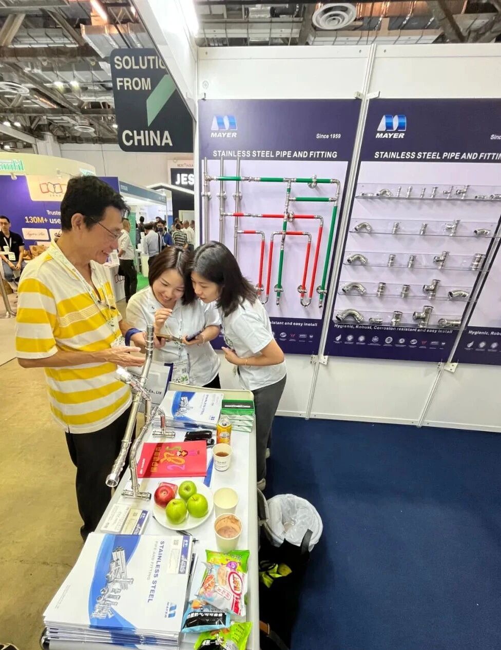 Leveraging this international platform, Guangzhou Mayer focused on showcasing its high-quality stainless steel pipes, pipe fittings, and supporting products for building water supply applications. The company’s products are made of food-grade stainless steel materials such as 304 and 316L, with specifications ranging from DN15 to DN300. They have outstanding advantages including corrosion resistance, long service life, and hygienic safety, which can effectively prevent secondary pollution in pipelines. The double-groove press connection technology adopts a cold extrusion physical connection method, with no harmful substances released. It ensures safe and reliable connections, simple and efficient installation, and is suitable for a variety of application scenarios.