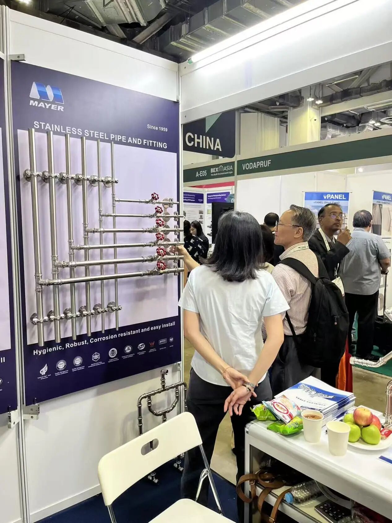 From September 3rd to 5th, Guangzhou Mayer Co., Ltd. made its appearance at the 2025 Singapore Green Building & Interior Decor Expo (BEX Asia), which was held at the Marina Bay Sands Expo and Convention Centre in Singapore, with its booth number A-D10. As an enterprise deeply engaged in the stainless steel piping manufacturing industry, this participation marks a significant step for Guangzhou Mayer to expand into the Southeast Asian market and connect with the international green building market.