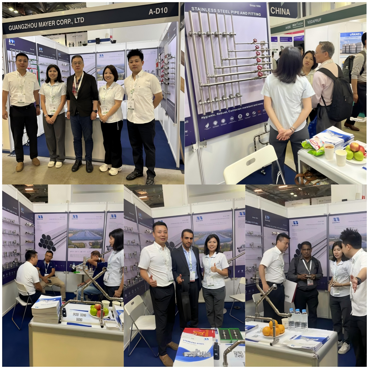 Guangzhou Mayer leveraged this international platform to showcase high-quality stainless-steel pipes, fittings, and accessories for building water supply systems. Our products use food-grade stainless steel materials such as 304 and 316L, with specifications ranging from DN15 to DN300. They offer excellent corrosion resistance, long service life, and hygienic safety—effectively preventing secondary pollution in pipelines. Our double-press connection technology uses cold extrusion for physical bonding, ensuring no harmful substance release, secure connections, and efficient installation across diverse applications.