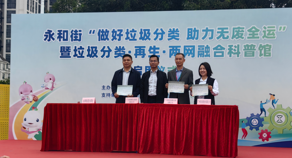On October 24, the Waste Sorting, Recycling and Two-Net Integration Science Museum of Yonghe Subdistrict, Huangpu District was officially put into use. Ms. Zhang Yana, Director and Chief Financial Officer of Guangzhou Mayer Co., Ltd., was invited to attend the inauguration ceremony and signed the "Green Partner Program" with the Yonghe Subdistrict Office, joining hands to build a green, low-carbon, civilized and livable beautiful Yonghe, and injecting corporate strength into the regional "Zero-Waste All-Sports" construction and circular economy development.
