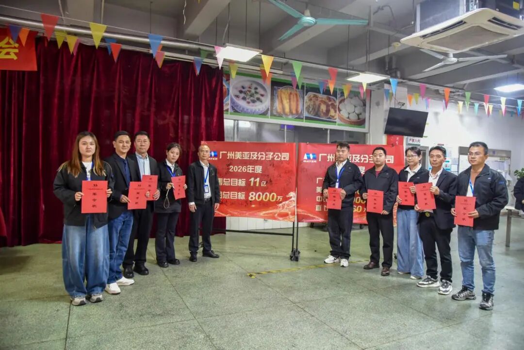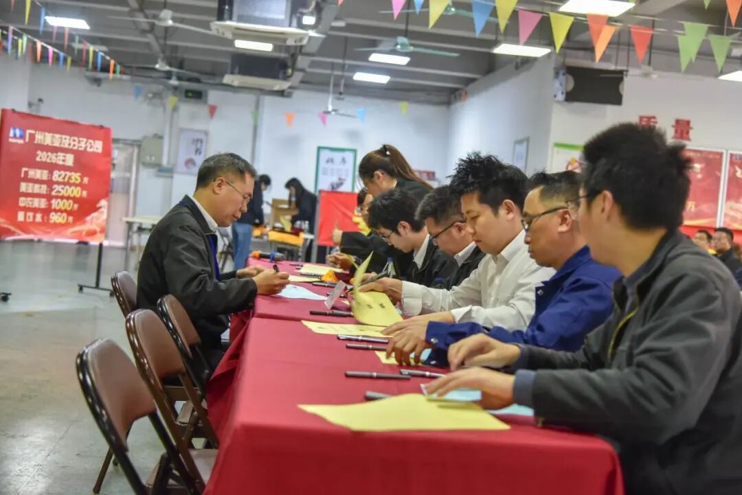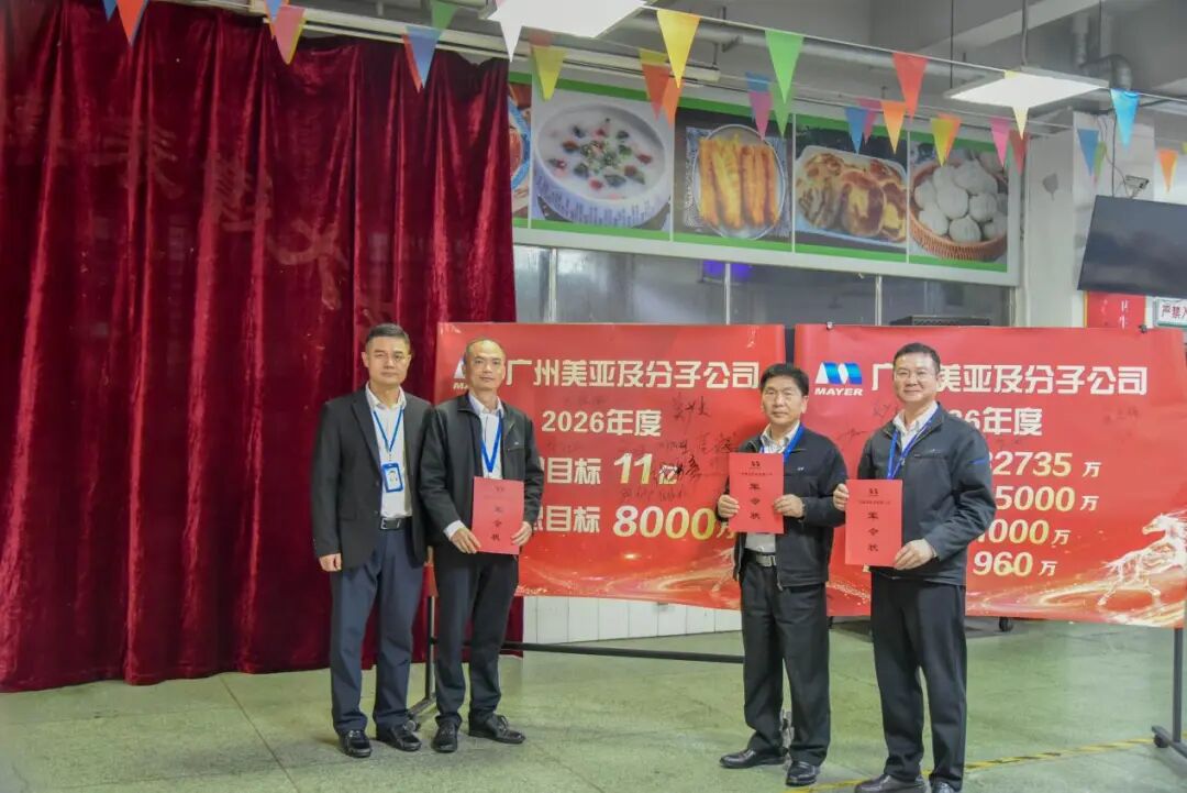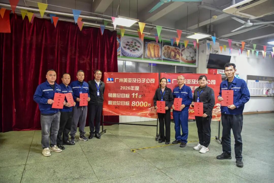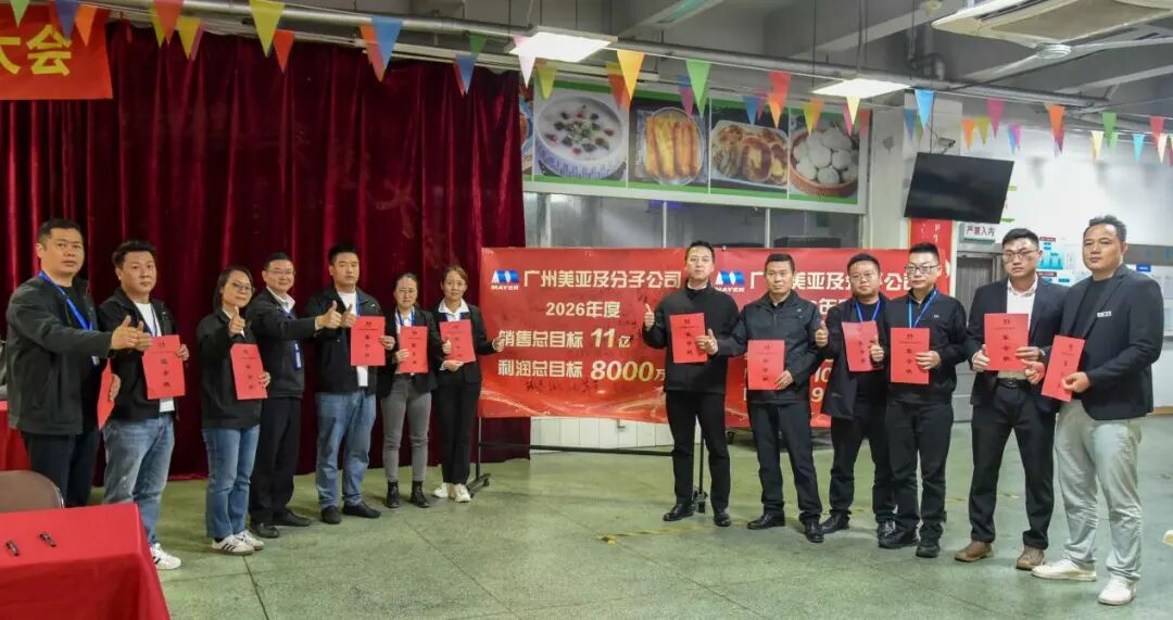 After repeated discussions by the entire leadership of Mayer, the total sales target for Guangzhou Mayer and its subsidiary companies in 2026 was set at 1.1 billion yuan, with a profit target of 80 million yuan. The subsidiary companies, department managers, supervisors, business and project leaders signed the 2026 annual commitment targets.
