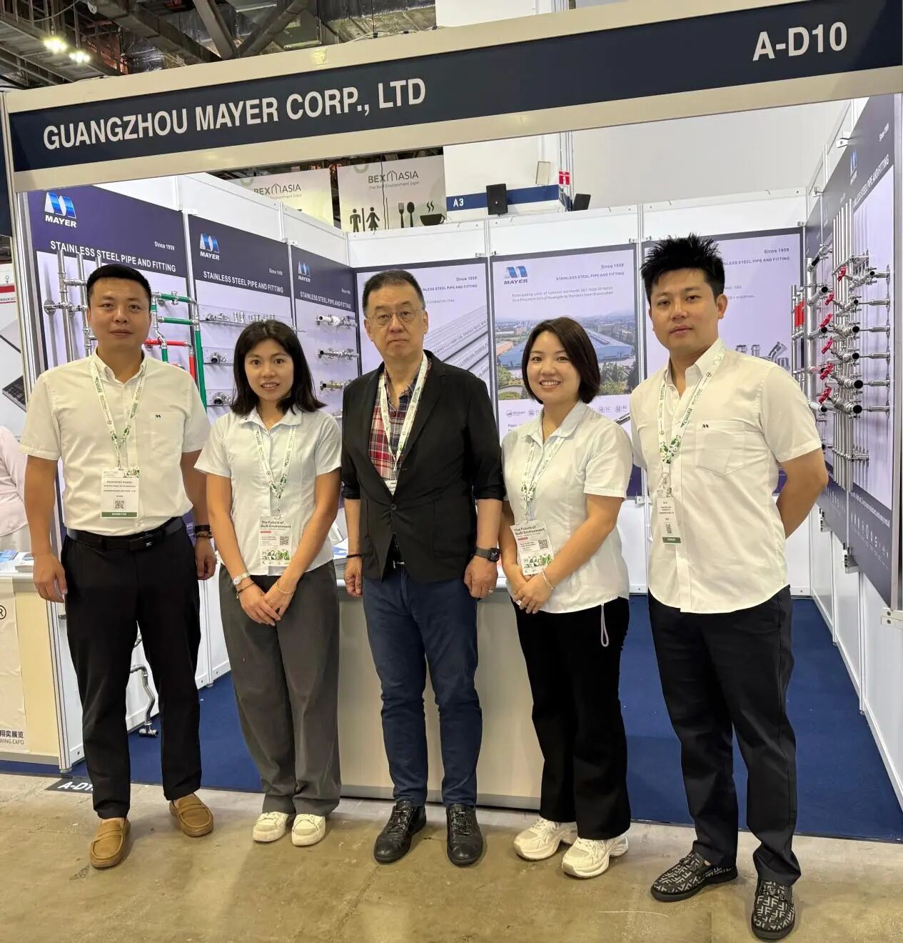 From September 3rd to 5th, Guangzhou Mayer Co., Ltd. made its appearance at the 2025 Singapore Green Building & Interior Decor Expo (BEX Asia), which was held at the Marina Bay Sands Expo and Convention Centre in Singapore, with its booth number A-D10. As an enterprise deeply engaged in the stainless steel piping manufacturing industry, this participation marks a significant step for Guangzhou Mayer to expand into the Southeast Asian market and connect with the international green building market.