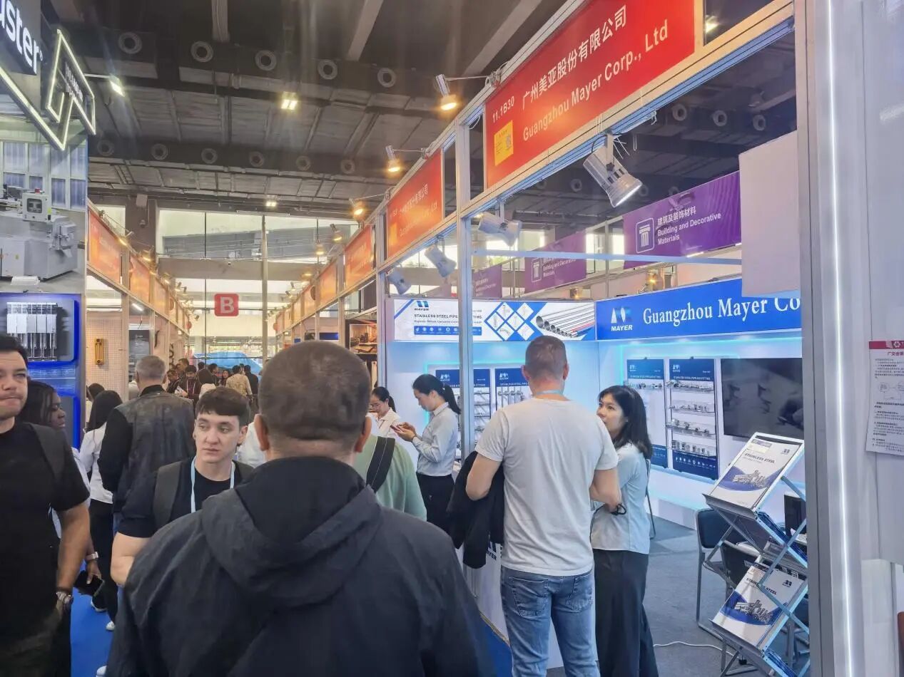 On October 27, the second phase of the 138th China Import and Export Fair (Canton Fair) concluded successfully. With "Quality Home Furnishings" as its core theme, this phase of the Canton Fair attracted over 10,000 enterprises to participate. Guangzhou Mayer Co., Ltd. showcased its full range of green building materials—stainless steel water pipes and fittings (Booth No.: 11.1B29-30), presenting a feast of "green, eco-friendly, and sustainable" water supply solutions to global merchants.