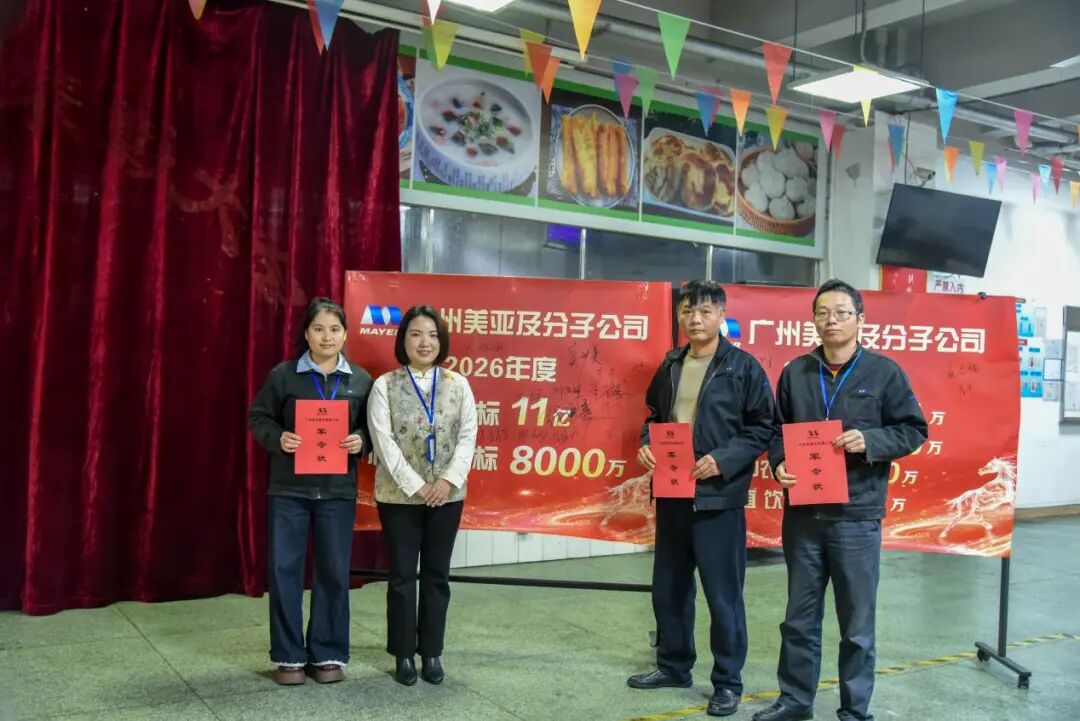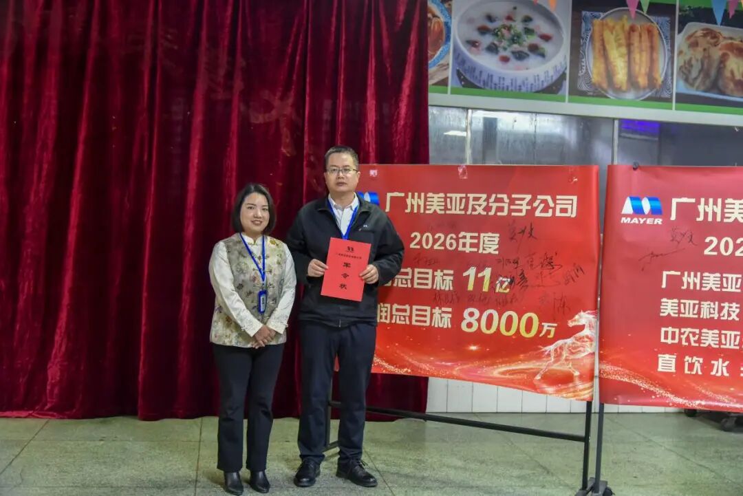 After repeated discussions by the entire leadership of Mayer, the total sales target for Guangzhou Mayer and its subsidiary companies in 2026 was set at 1.1 billion yuan, with a profit target of 80 million yuan. The subsidiary companies, department managers, supervisors, business and project leaders signed the 2026 annual commitment targets.